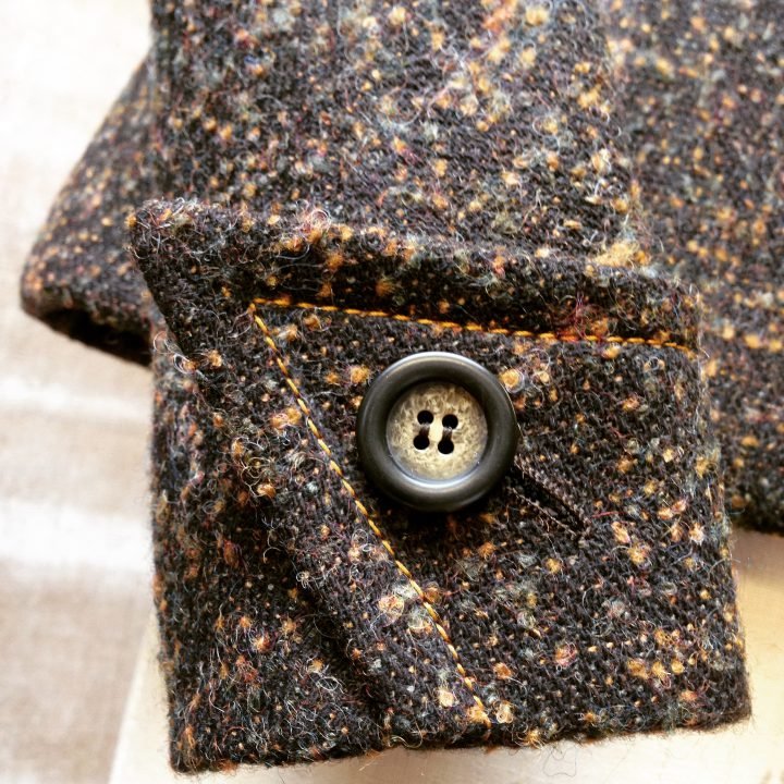 Recreation of a John Cavanagh inspired bronze brown mottled tweed suit