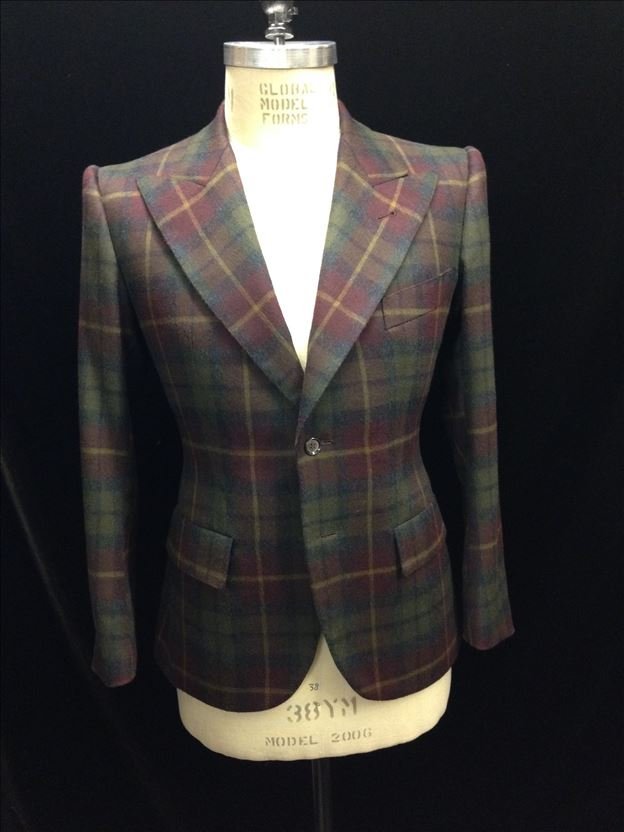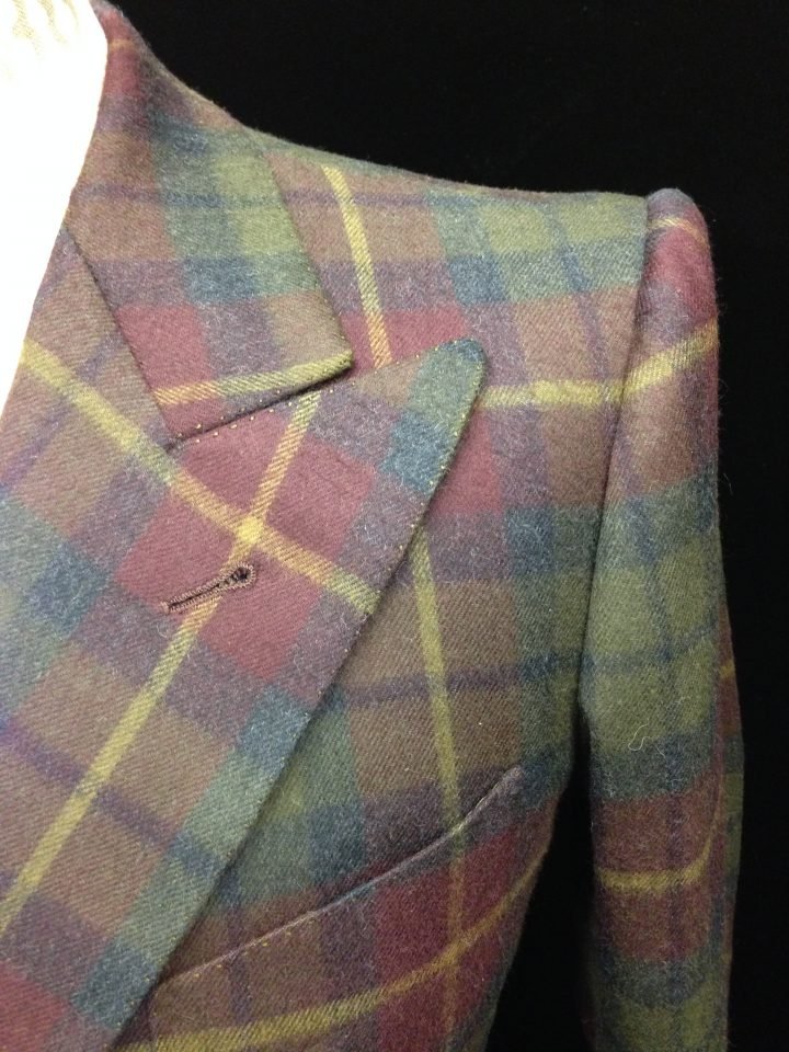 suit in aubergine/green plaid Italian flannel