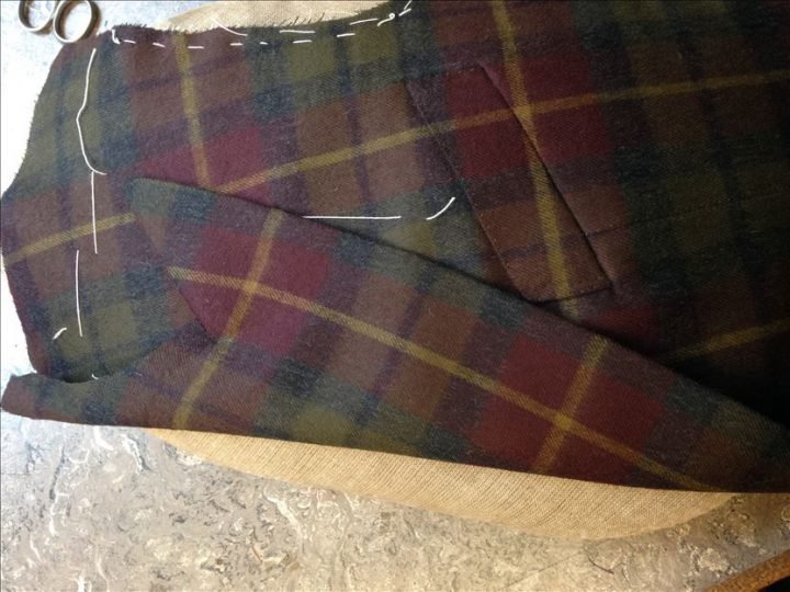 jacket in maroon/green Harris tweed